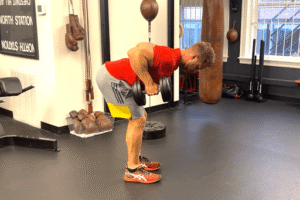 Dumbbell row – Upper back strength is important for keeping good spinal alignment when you are cycling. Any variation of a row will target the muscles that keep your back in a neutral position. Perform 6-8 reps for 3 sets.