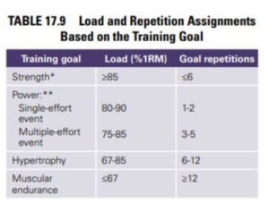 Power training focuses on the rate of force development in the fastest period of time. Simply put, this means the max amount you can lift in the quickest amount of time; power = force x speed. Power training works on improving explosive strength, muscular and functional performance. This kind of workout would provide good carryover for athletes where speed and power is desirable such as football for quick sprinting or basketball to improve a vertical jump. An optimal set and rep range should aim to complete 3-5 sets of 2-5 reps from 60-80% 1RM.